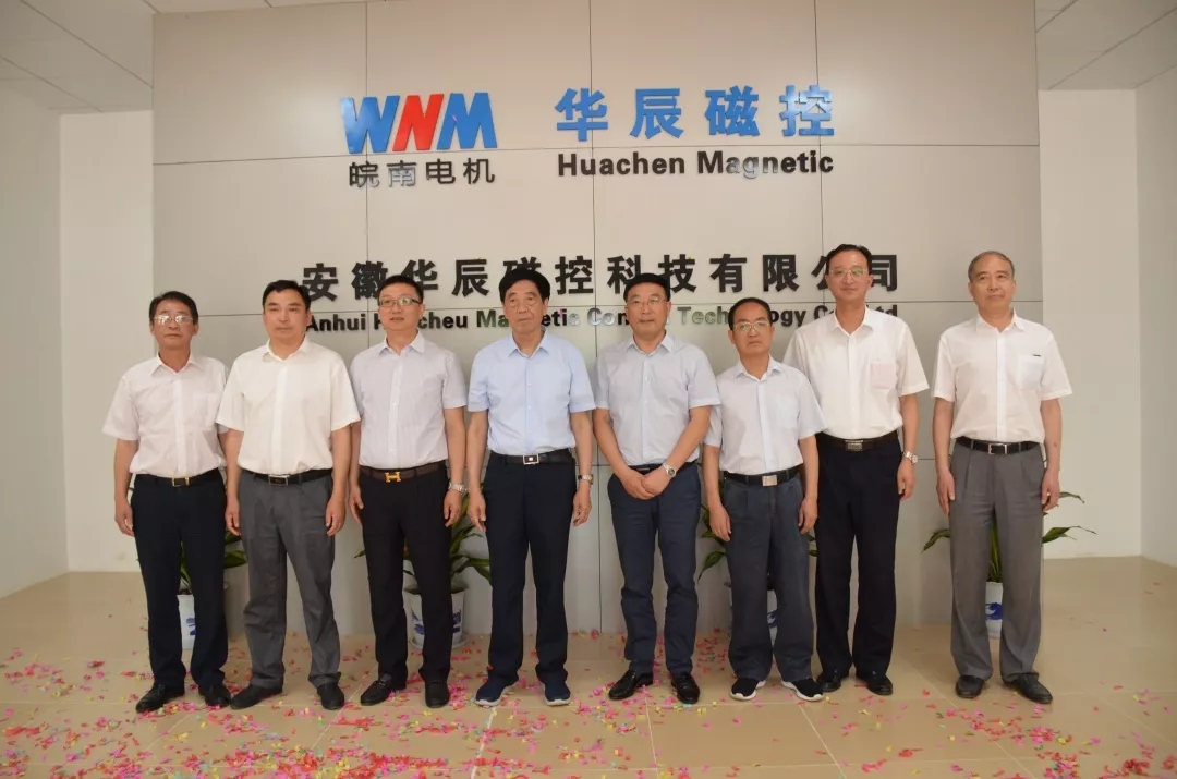 6月16日上午,安徽華辰磁控科技有限公司揭牌儀式在涇縣經(jīng)濟(jì)開(kāi)發(fā)區(qū)高新企業(yè)創(chuàng)業(yè)園舉行,縣委副書記、縣長(zhǎng)施懷中,縣人大常委會(huì)主任、縣工業(yè)提速大會(huì)戰(zhàn)指揮部政委左銀海出席并為公司開(kāi)業(yè)揭幕,副縣長(zhǎng)馮曉堯?yàn)閮x式致辭。安徽皖南電機(jī)股份有限公司董事長(zhǎng)陳根喜,黨委書記、副董事長(zhǎng)管兵,副董事長(zhǎng)、總經(jīng)理陳學(xué)鋒等高層領(lǐng)導(dǎo)及上海眾辰電子科技有限公司等相關(guān)單位和銷售公司經(jīng)理們共同參加了揭牌儀式。